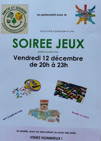 L'ASSOCIATION AMITIE ET SOURIRE LES LEVES ET THOUMEYRAGUES VOUS PROPOSE DES SOIREES JEUX